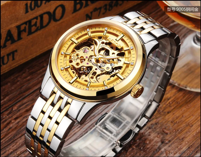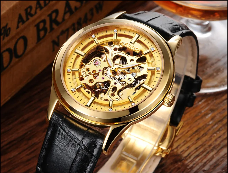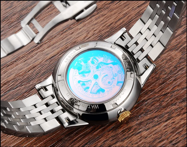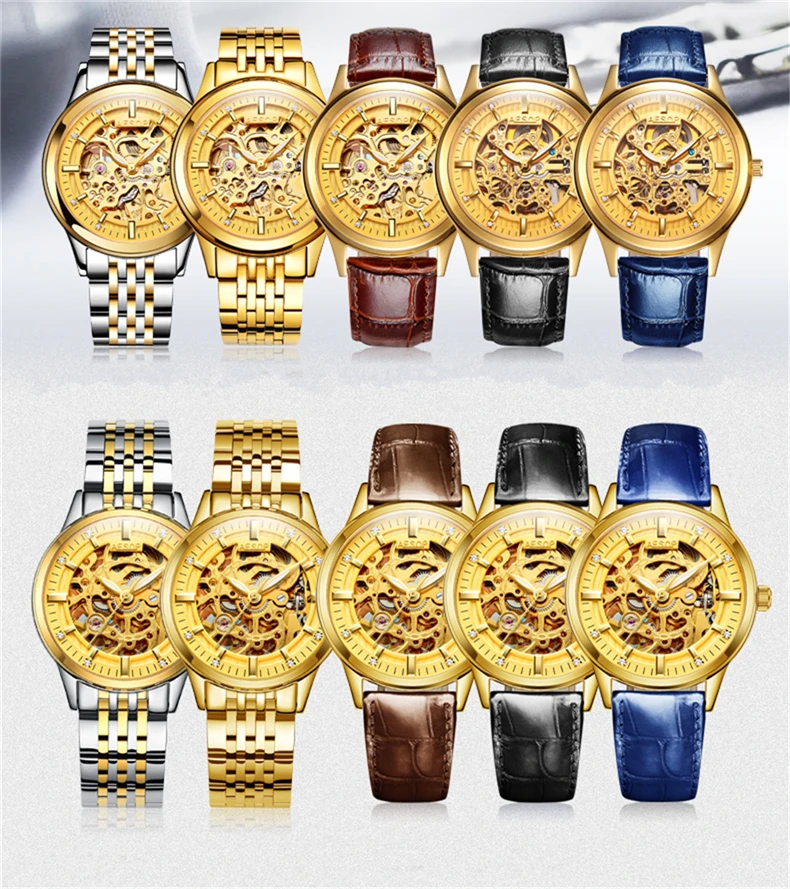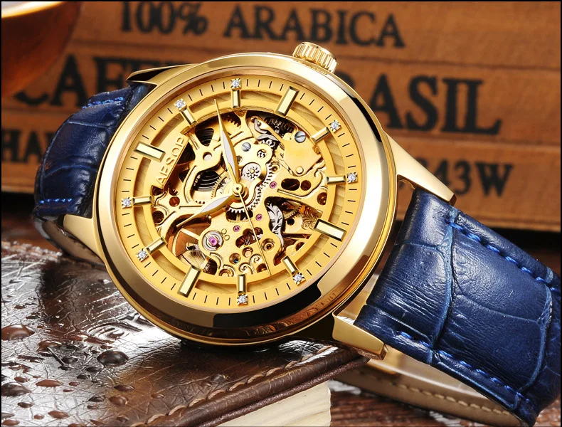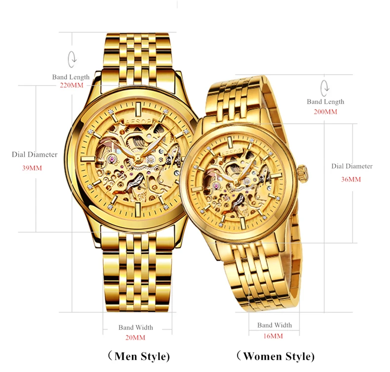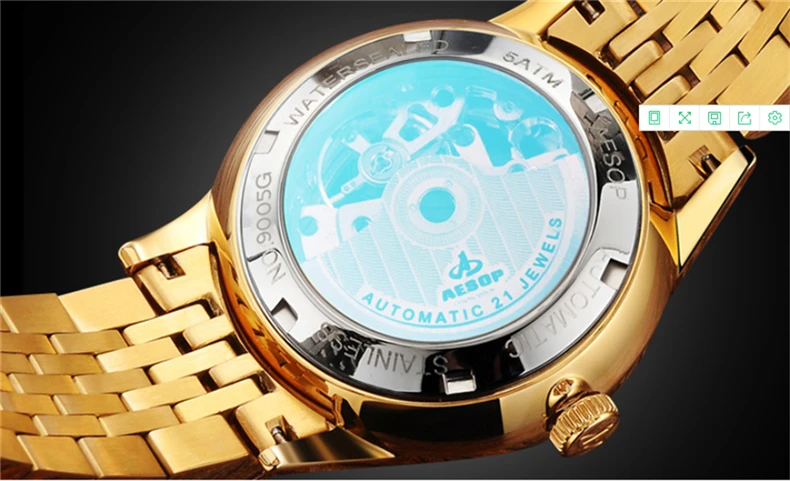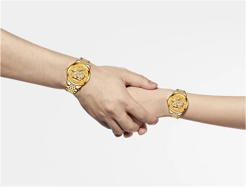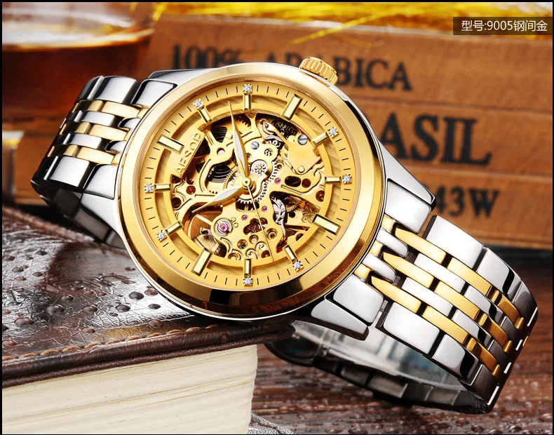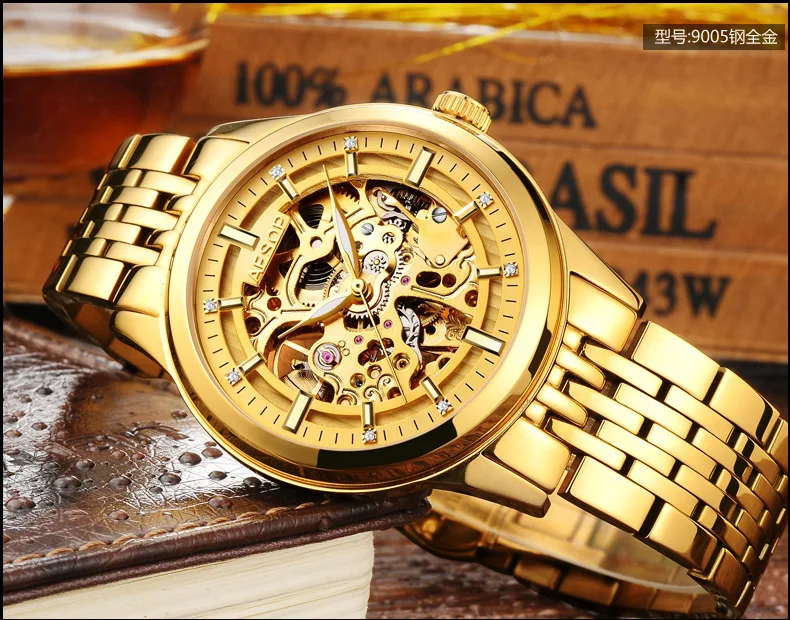 Aesop ouro relógio automático homem mulher casal amante moda luminosa esqueleto mecânico relógio de pulso luxo reloj hombre mujer