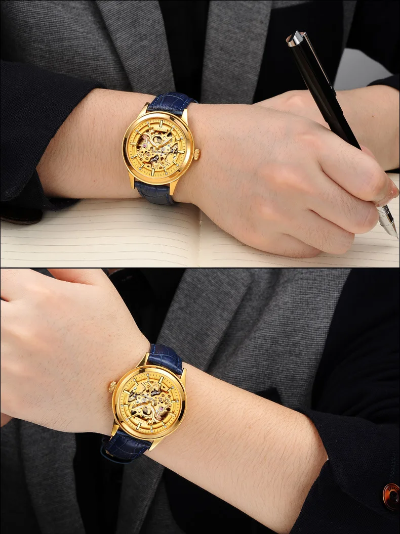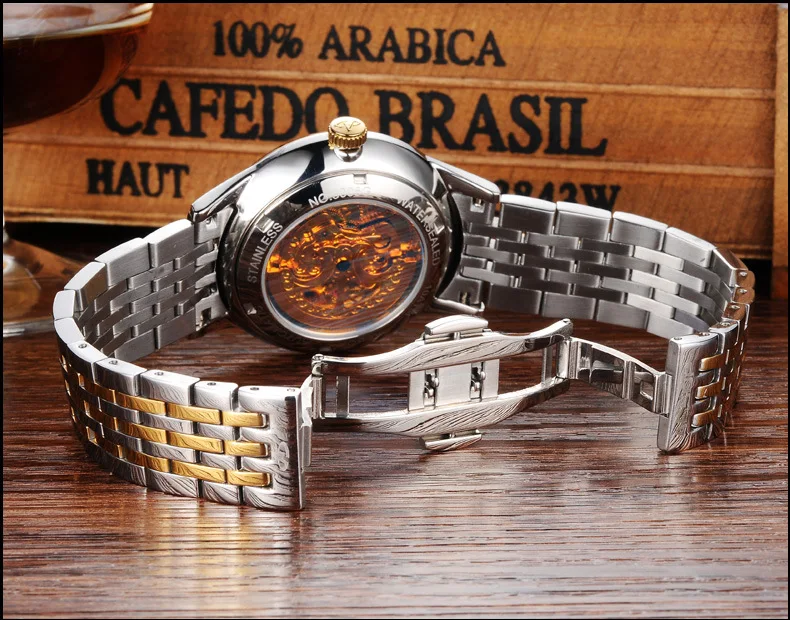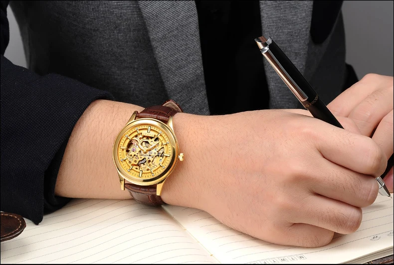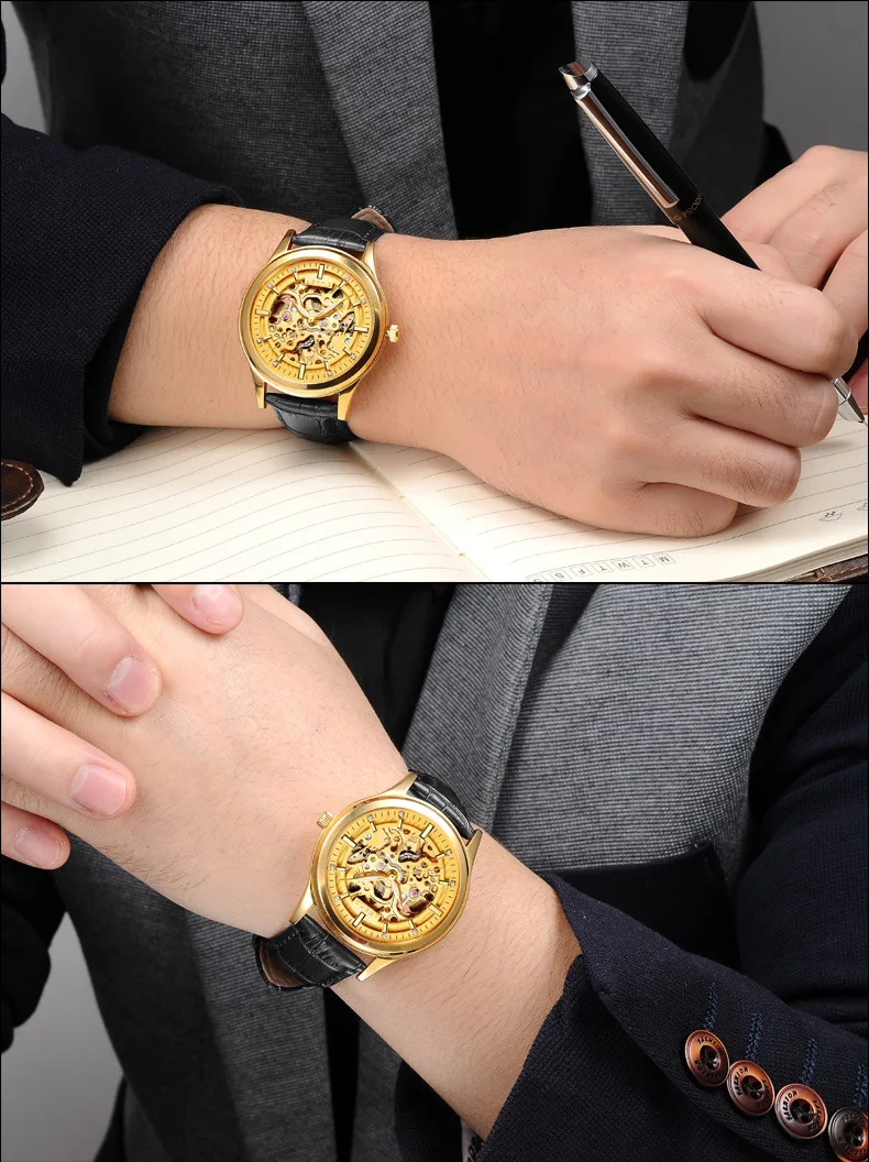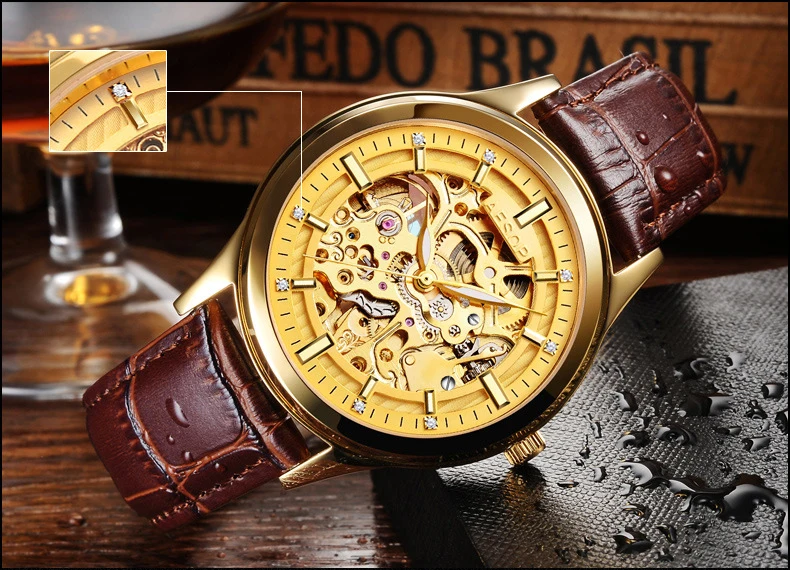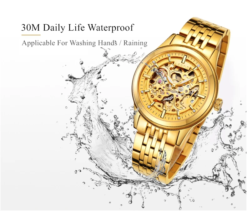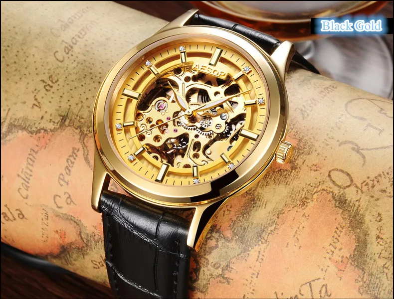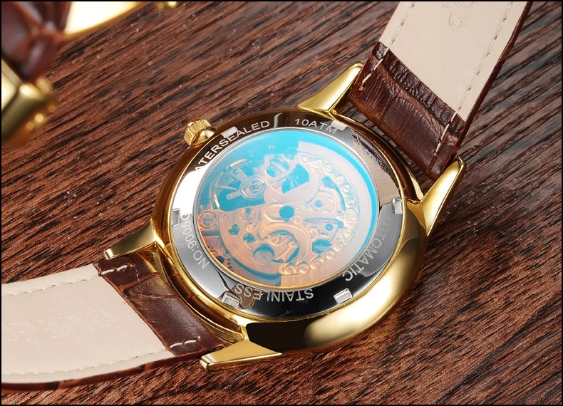 Aesop ouro relógio automático homem mulher casal amante moda luminosa esqueleto mecânico relógio de pulso luxo reloj hombre mujer